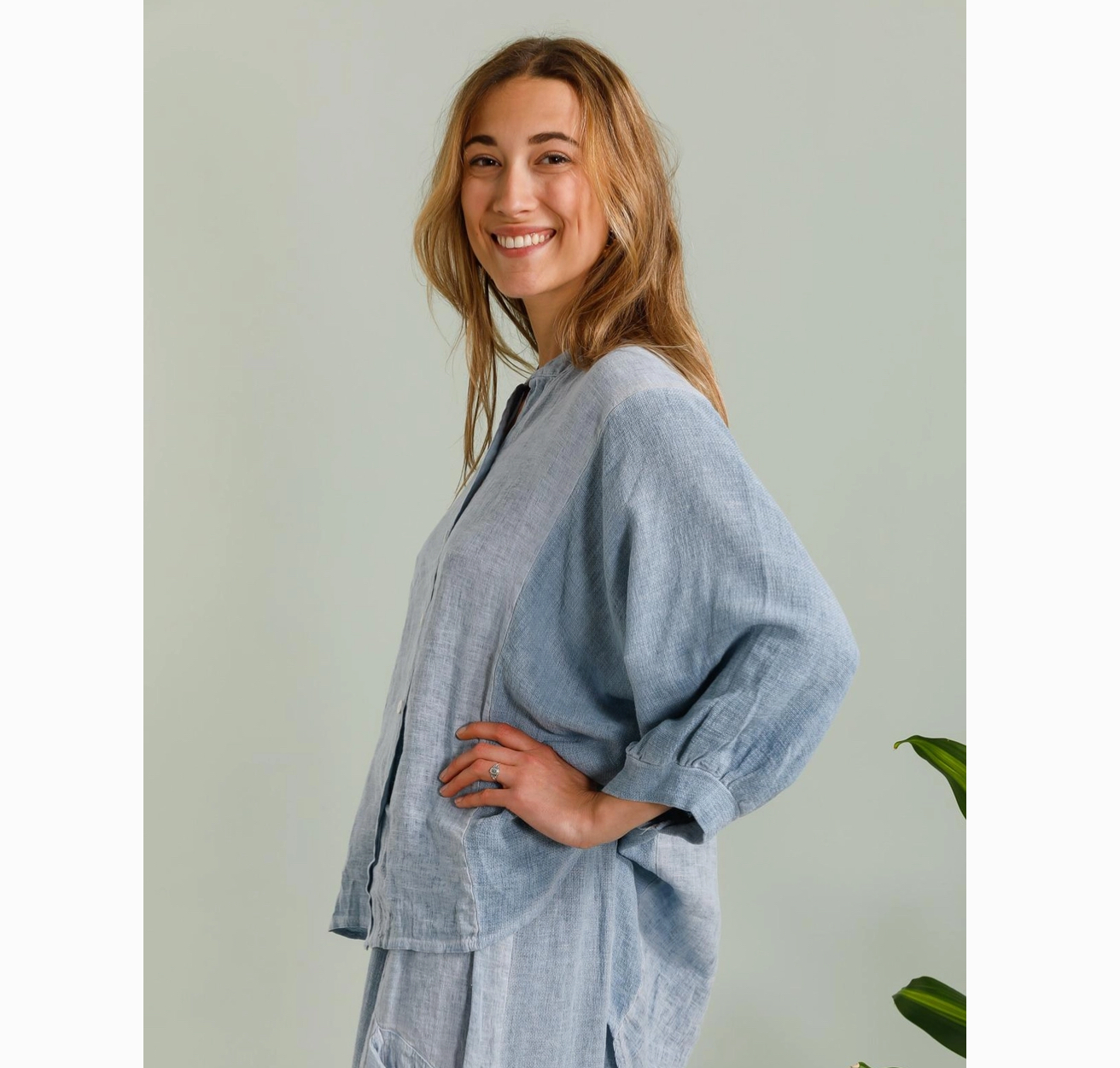 Het voor en achterpand is van 100% linnen en de mouwen van de linnenmix wat de blouse een speciale uitstraling geeft!