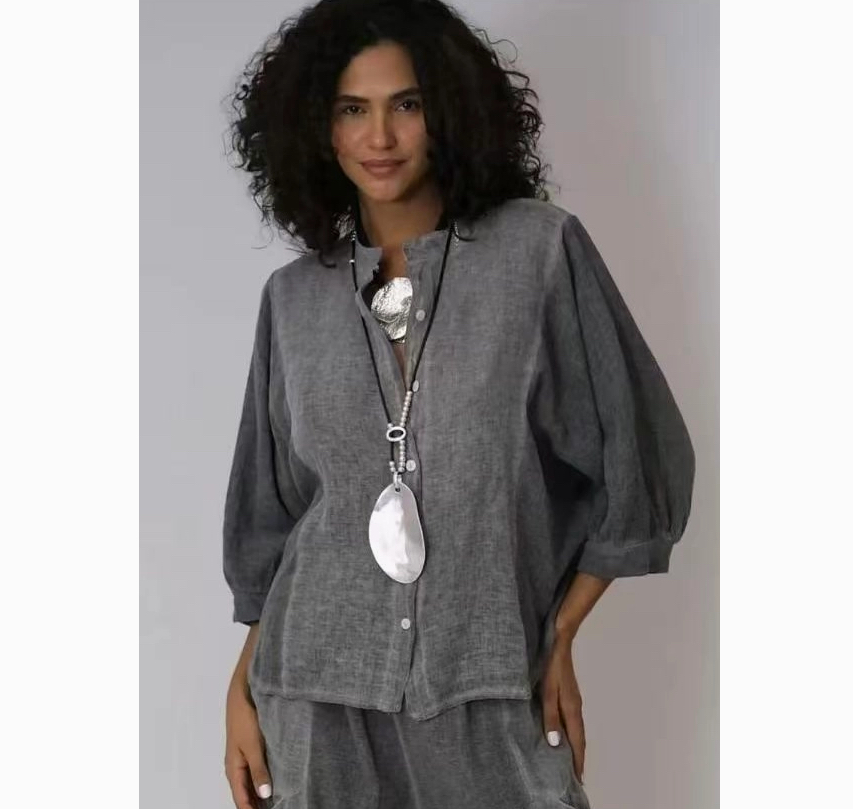 Blouse linnenmix met knoopjes (meerdere kleuren)