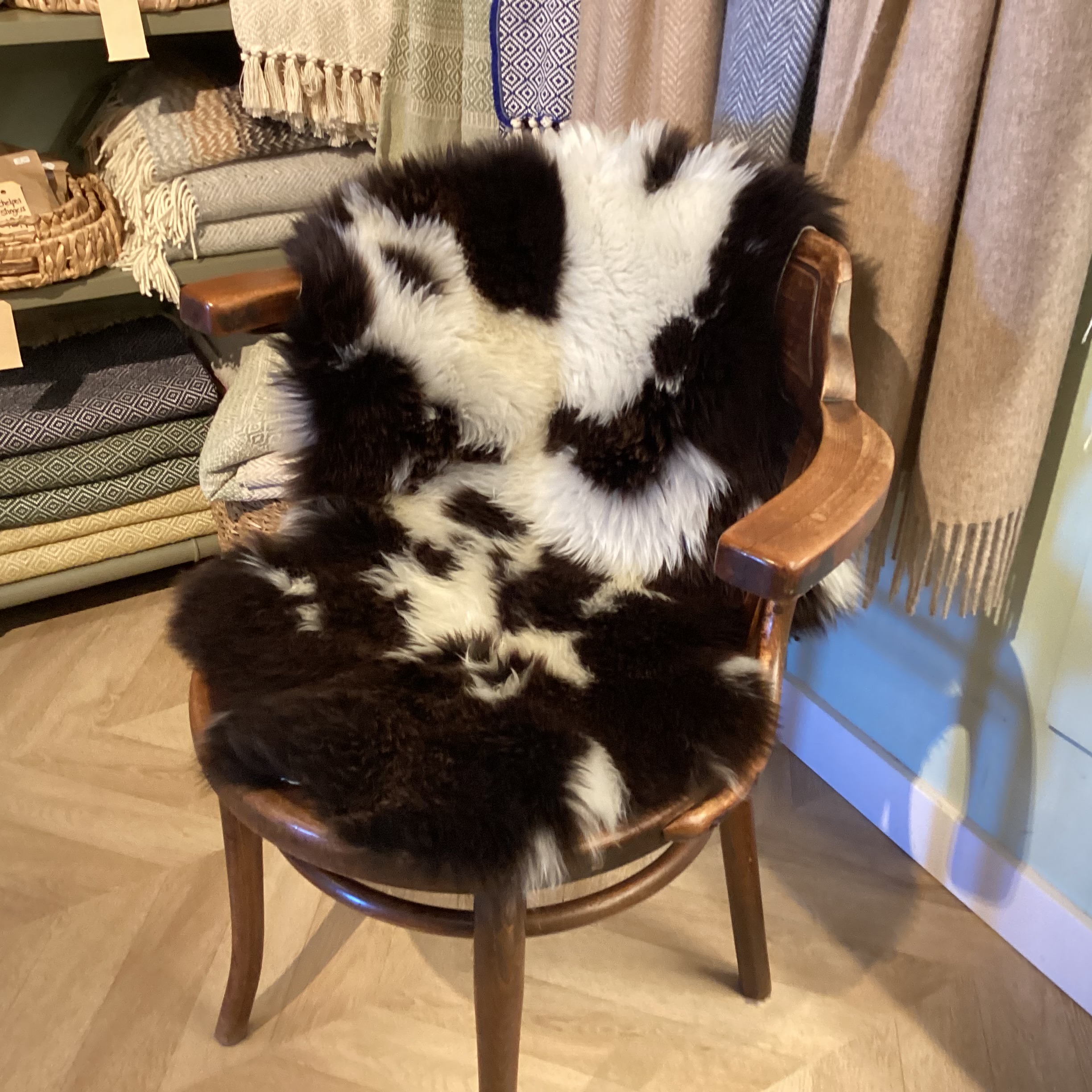Heerlijk zachte vacht met een bonte tekening.