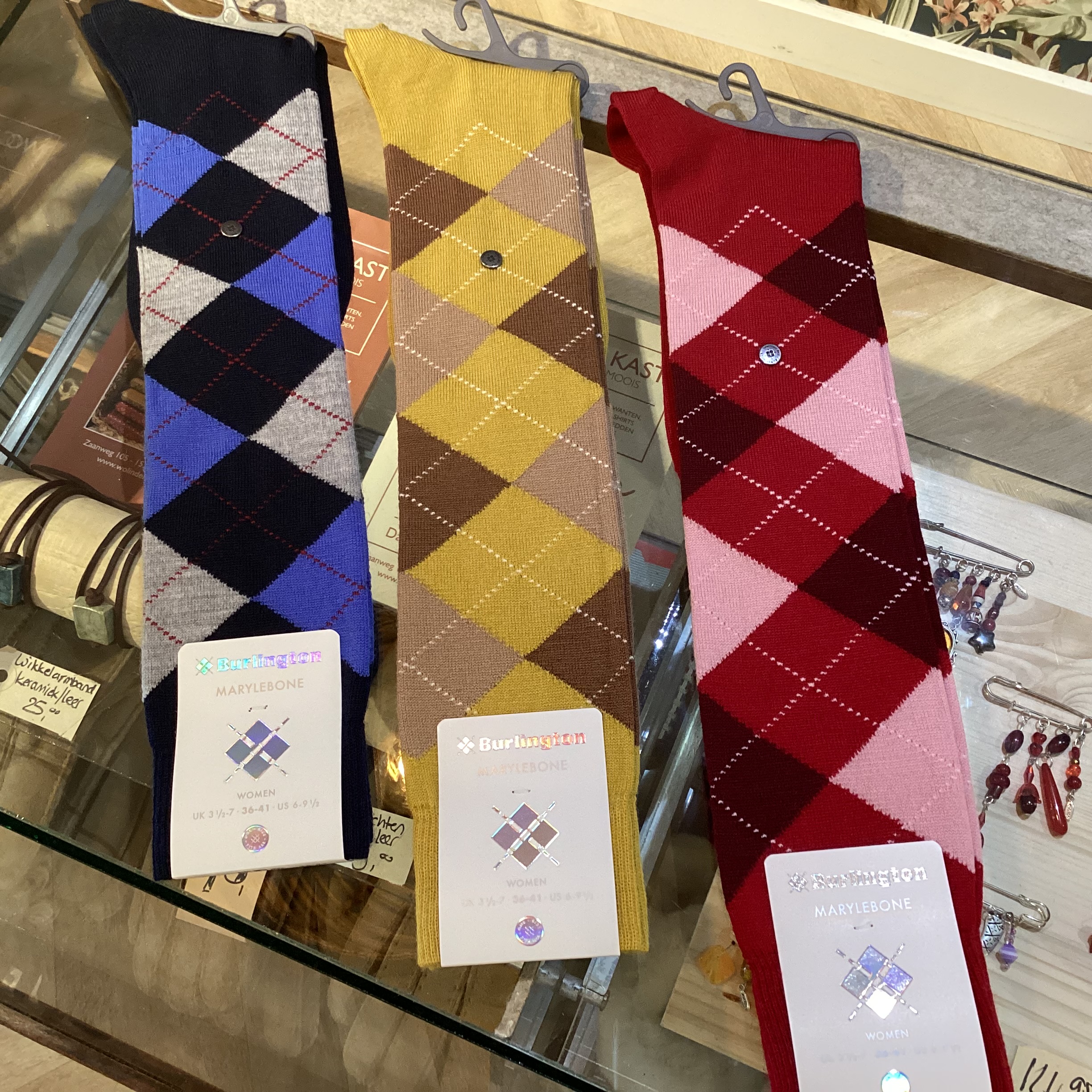 Fijne kniekousen van wolmix met Argile patroon.