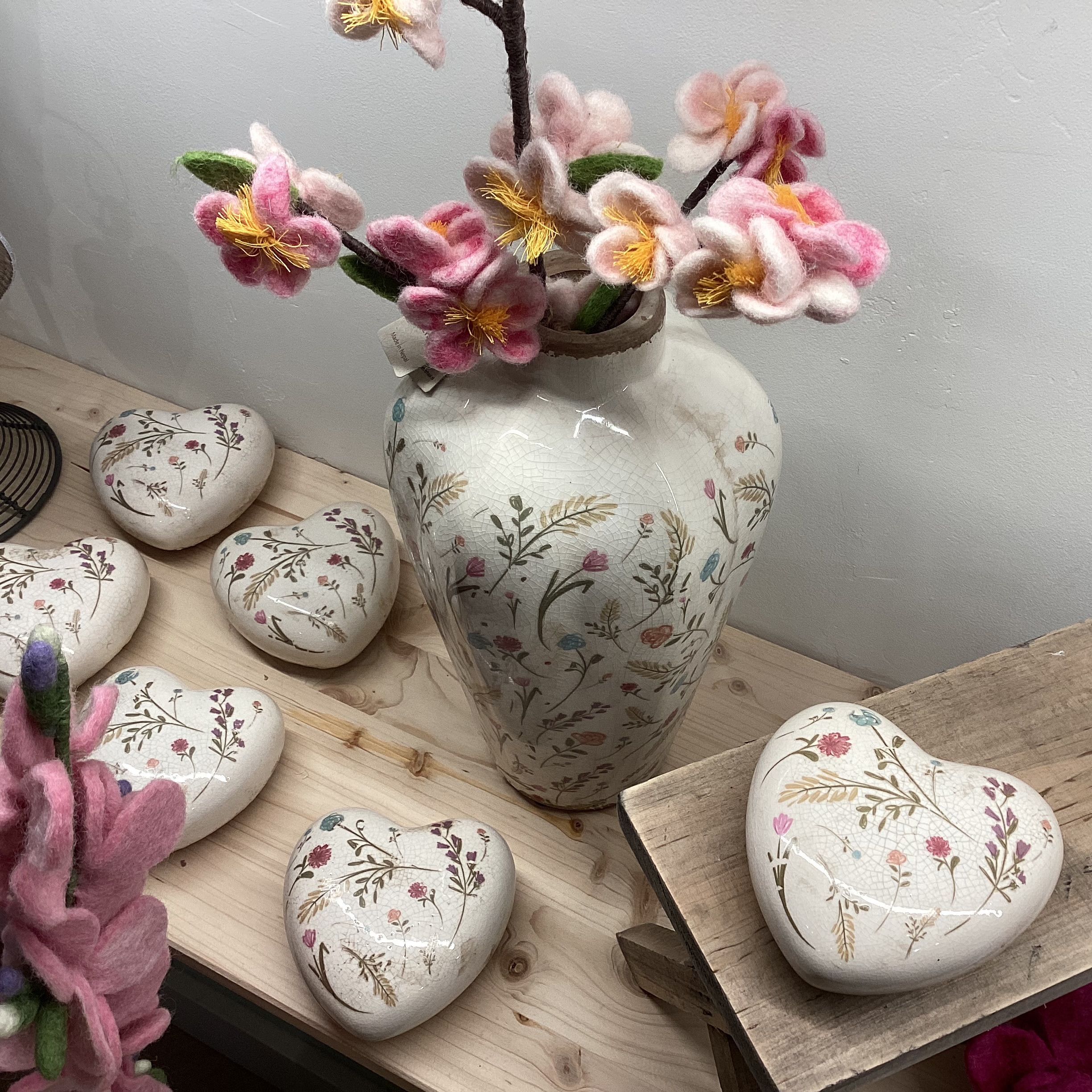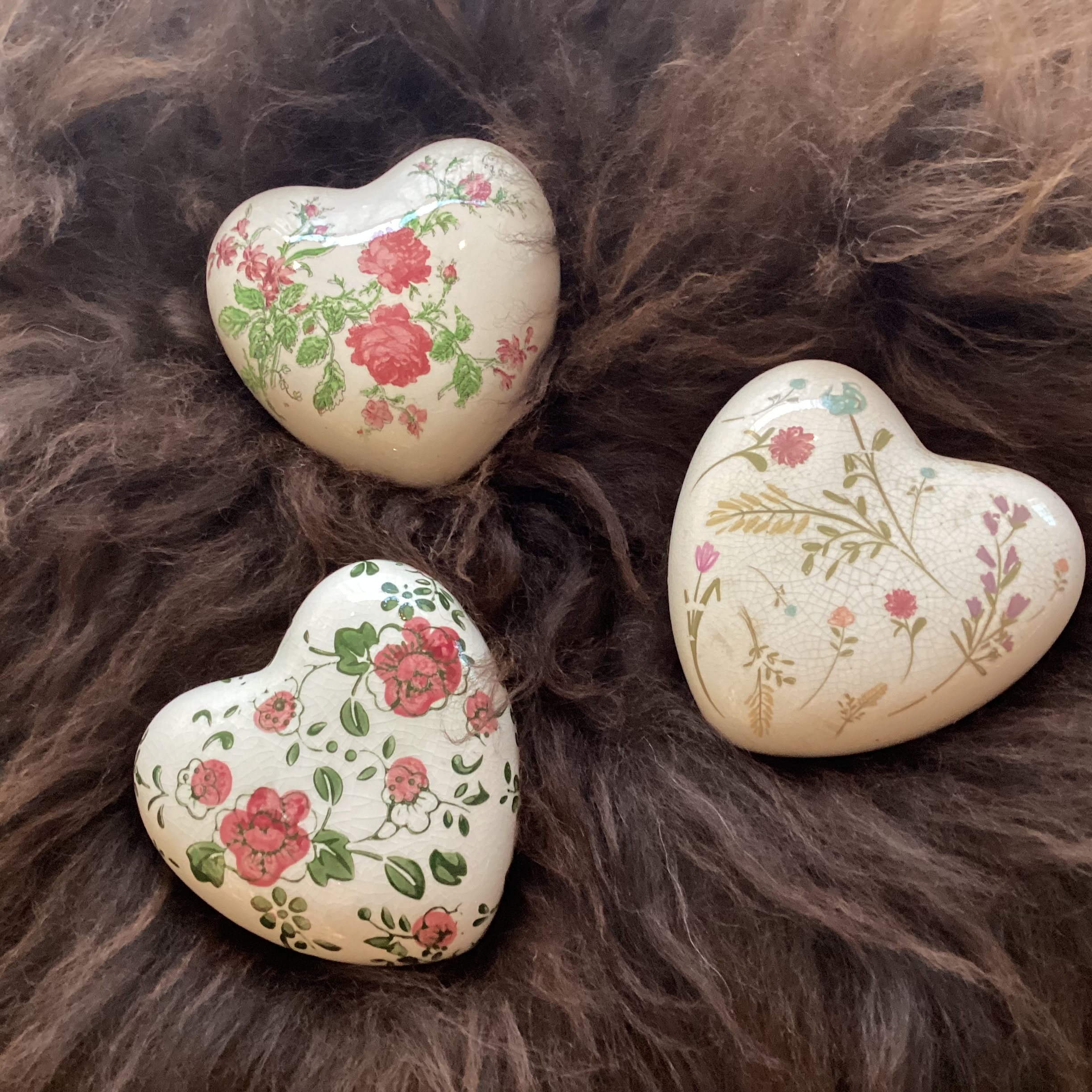 Romantische harten met bloemmotief van keramiek.