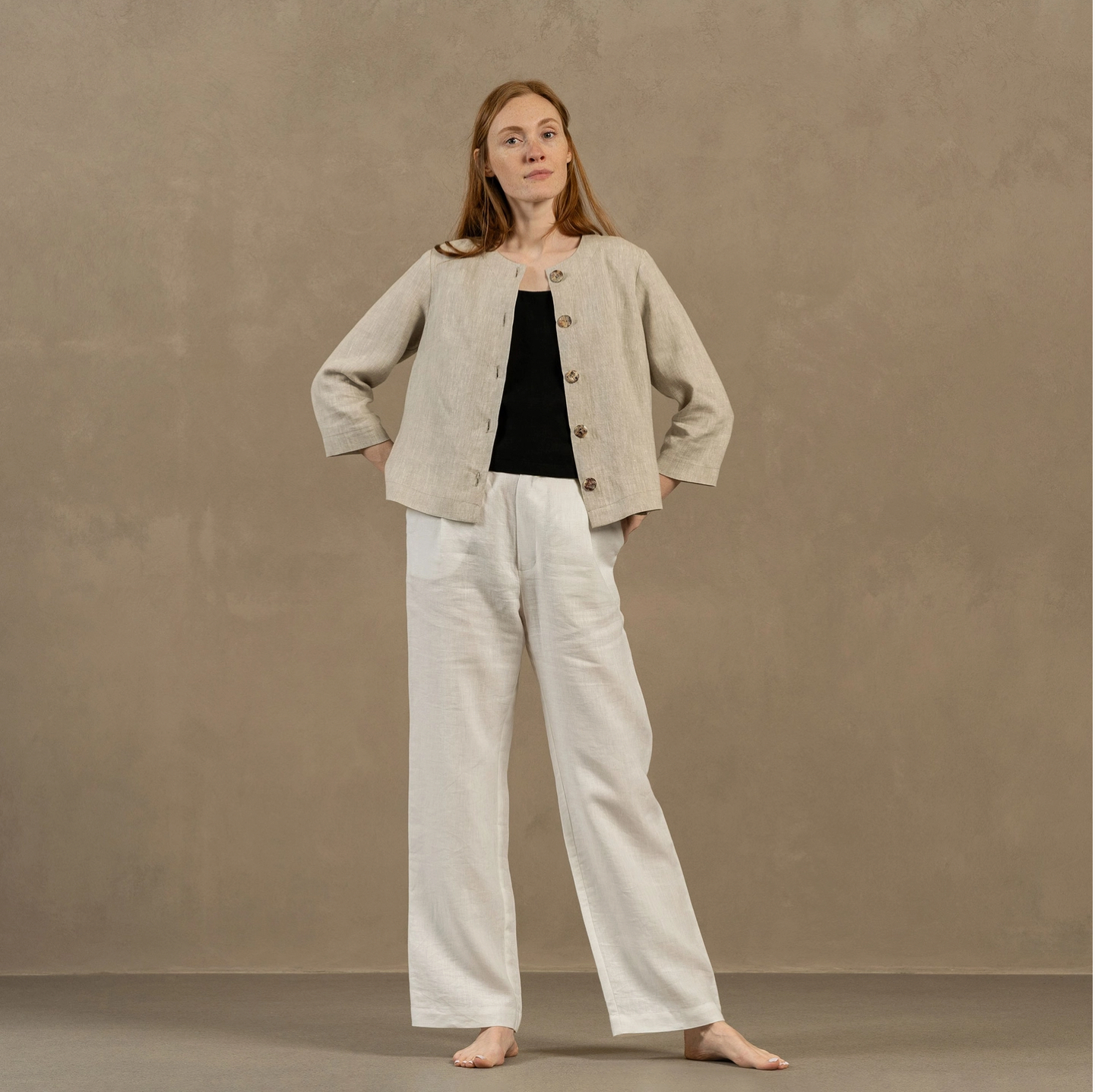 Linnen jasje met knopen.